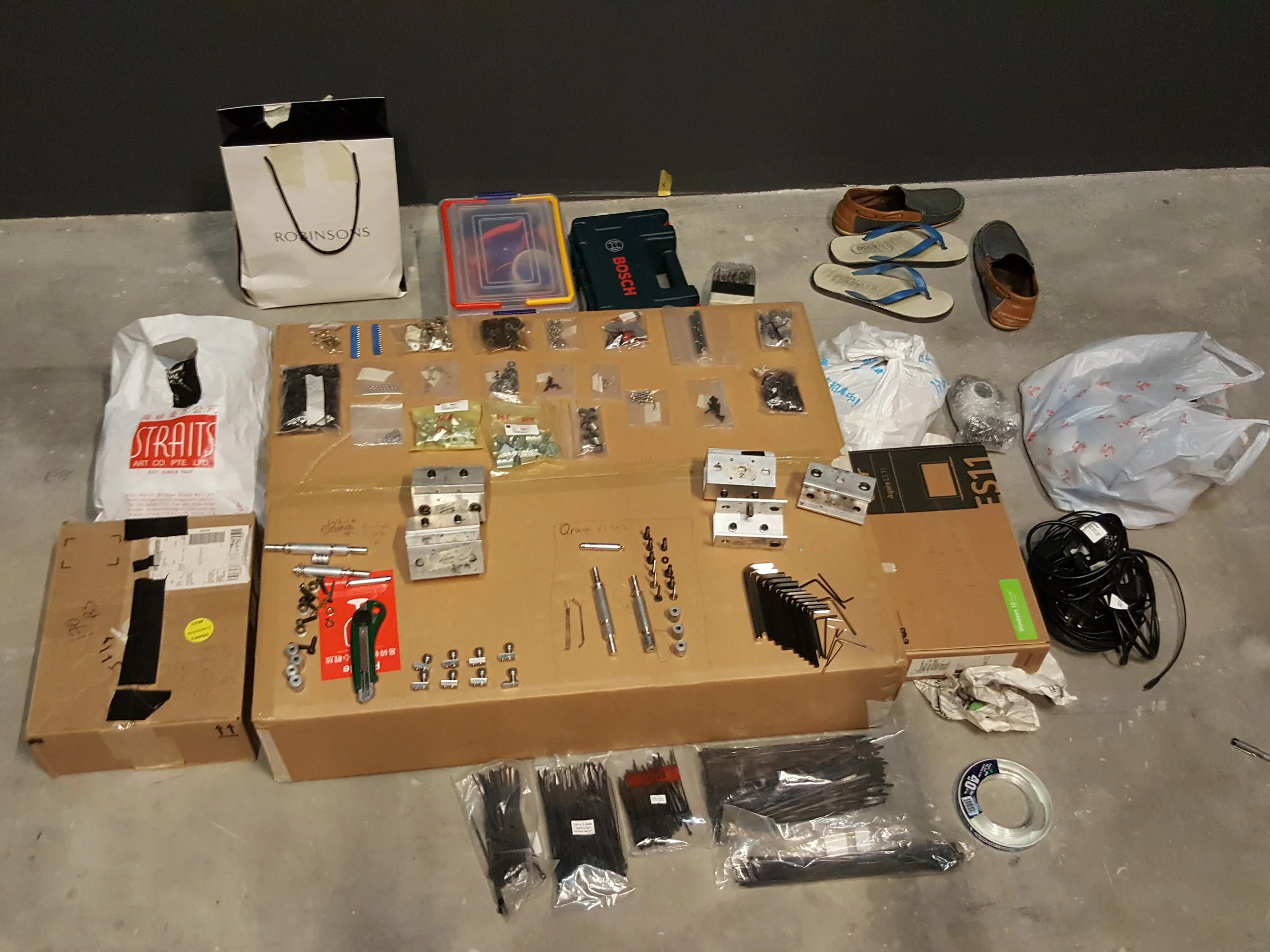 Luckily the shipment for the mechanical parts was done (almost) without a hitch. Most of the parts was measured, drilled and sawed by the three of us in the metal workshop in Singapore.